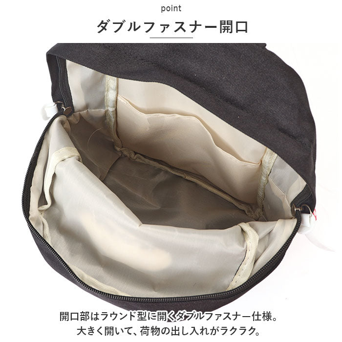・開口部はラウンド型に開くダブルファスナー仕様。大きく開いて、荷物の出し入れがラクラク。