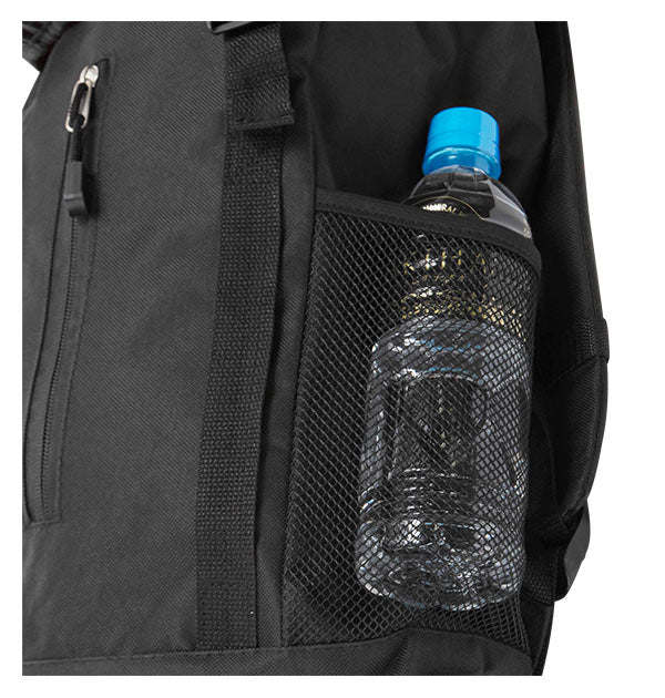 カジメイクのリュック、バックパックです。スクエアタイプ、15リットルの大きめサイズで沢山入ります。大きく開くメインポケットは紐で絞れるようになっておりさっと物を出し入れするのに便利。サイドにはペットボトルなどを入れられるメッシュポケットがあるなど、機能性が高いバッグです。