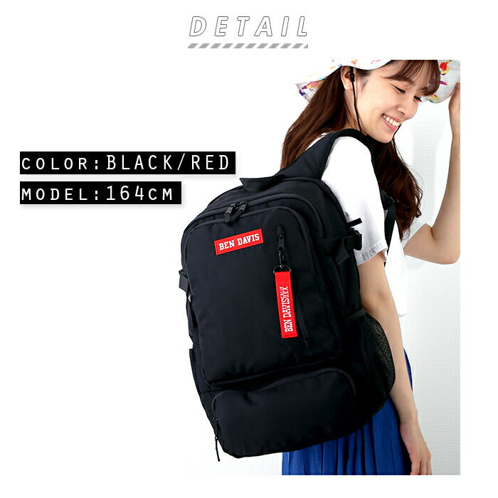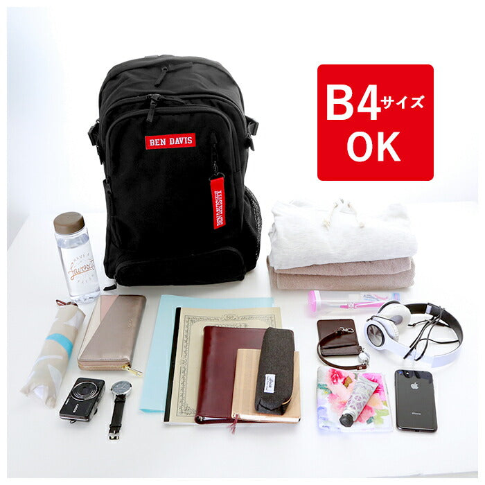 ・BEN DAVISのロゴテープが印象的な大容量リュック。メインスペースは容量が約22リットル!B4サイズ対応で通学・通勤・旅行などにも◎