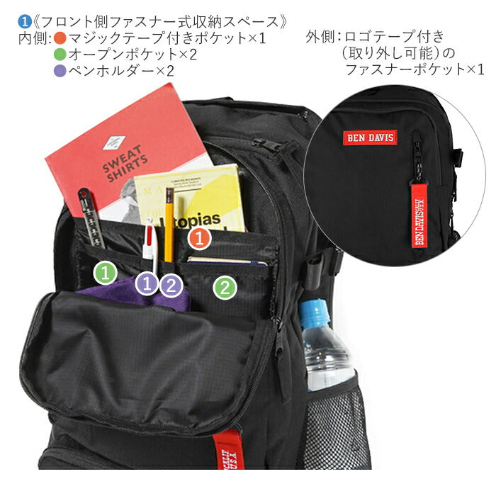 リュック メンズ ブランド 通販 BEN DAVIS ベンデイビス スポーツ 大容量 おしゃれ 黒 リュックサック シンプル 無地 ロゴ オシャレ a4 ママ レディース 通学 通勤 丈夫 軽量 チェストベルト 3ルーム 仕分け デイパック バックパック タブレットデイパック