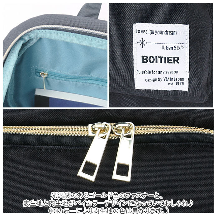 ・光沢感のあるゴールド色のファスナーと、表生地と内生地がバイカラーデザインになっていておしゃれ♪(※カラーにより内生地の色は異なります。)