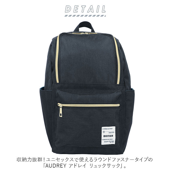 ・収納力抜群!ユニセックスで使えるラウンドファスナータイプの「AUDREY アドレイ リュックサック」。