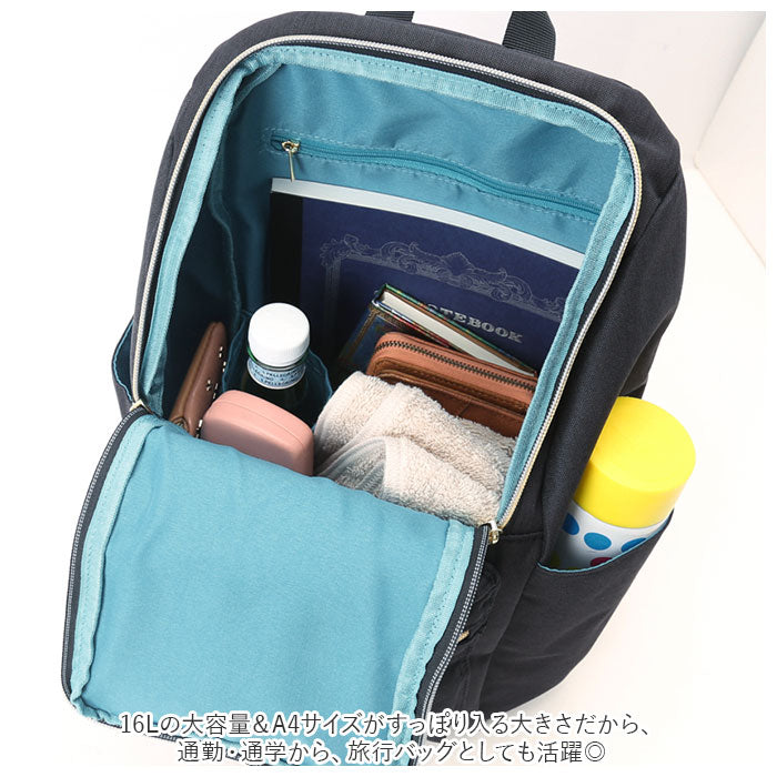 16Lの大容量&A4サイズがすっぽり入る大きさだから、通勤・通学から、旅行バッグとしても活躍◎