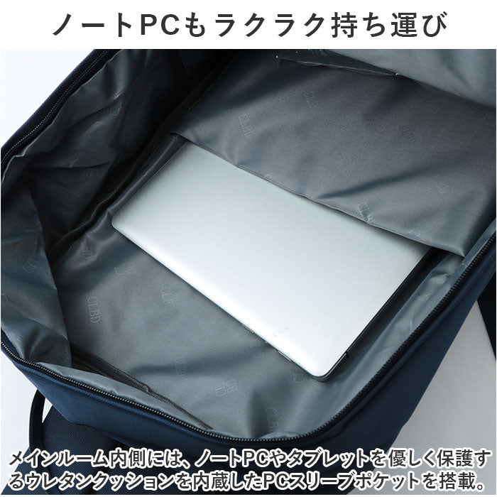 ・メインルーム内側には、ノートPCやタブレットを優しく保護するウレタンクッションを内蔵したPCスリーブポケットを搭載。繊細なモバイル機器類の持ち運びにぴったり!