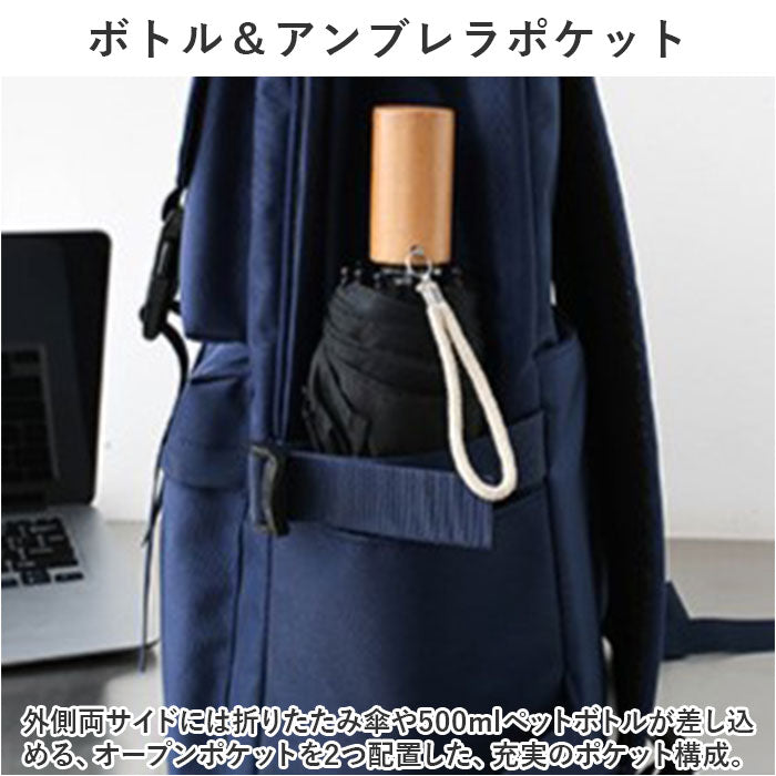 ・外側両サイドには折りたたみ傘や500mlペットボトルが差し込める、オープンポケットを2つ配置した、充実のポケット構成。