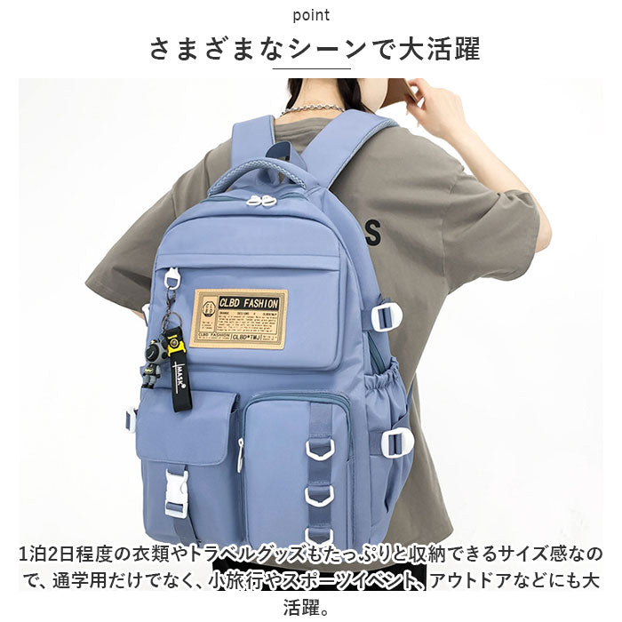 1泊2日程度の衣類やトラベルグッズもたっぷりと収納できるサイズ感なので、通学用だけでなく、小旅行やスポーツイベント、アウトドアなどにも大活躍。