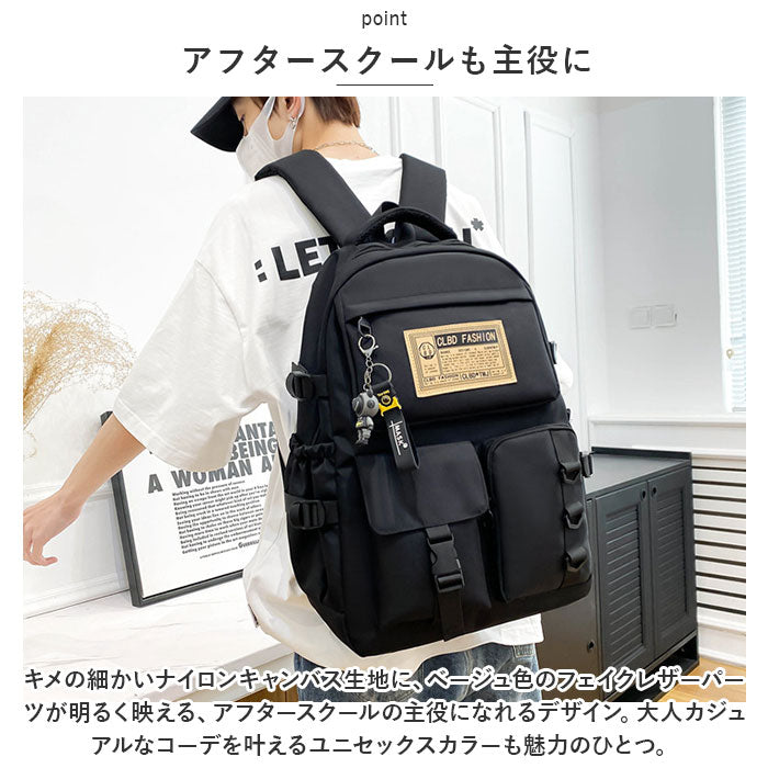※キメの細かいナイロンキャンバス生地に、ベージュ色のフェイクレザーパーツが明るく映える、アフタースクールの主役になれるデザイン。大人カジュアルなコーデを叶えるユニセックスカラーも魅力のひとつ。