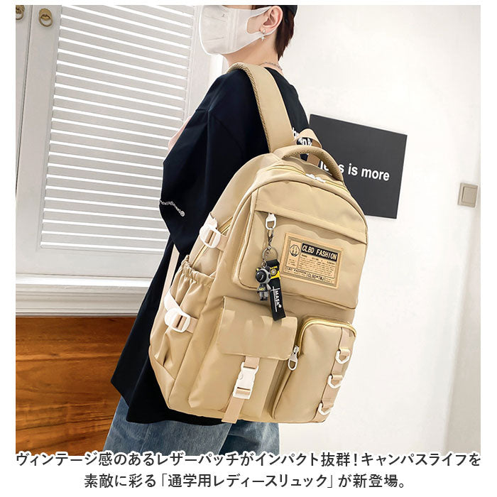 ・ヴィンテージ感のあるレザーパッチがインパクト抜群!キャンパスライフを素敵に彩る「通学用レディースリュック」が新登場。