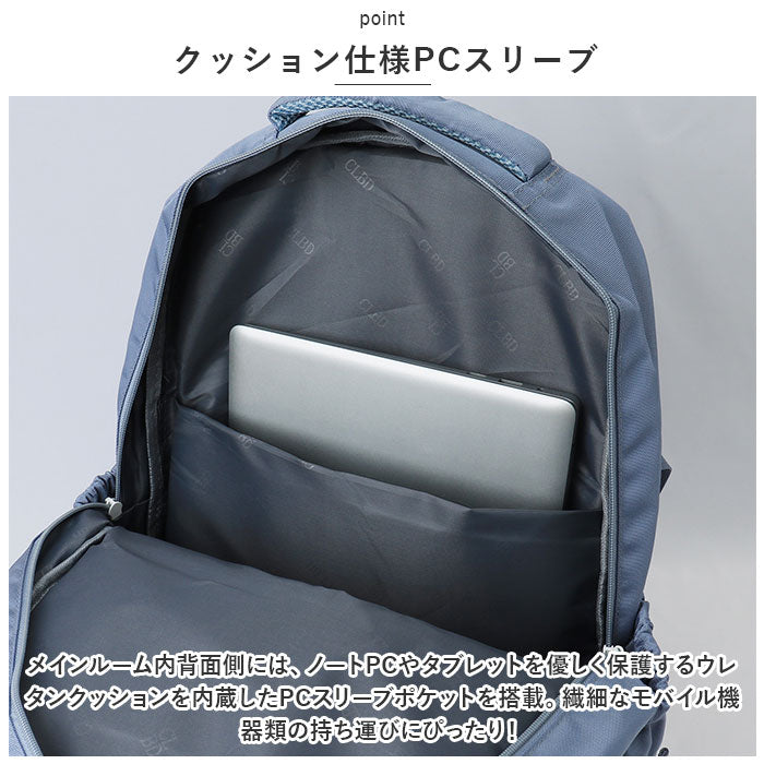 ・メインルーム内背面側には、ノートPCやタブレットを優しく保護するウレタンクッションを内蔵したPCスリーブポケットを搭載。繊細なモバイル機器類の持ち運びにぴったり!