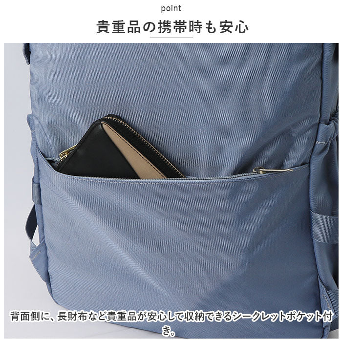 ・背面側に、長財布など貴重品が安心して収納できるシークレットポケット付き。