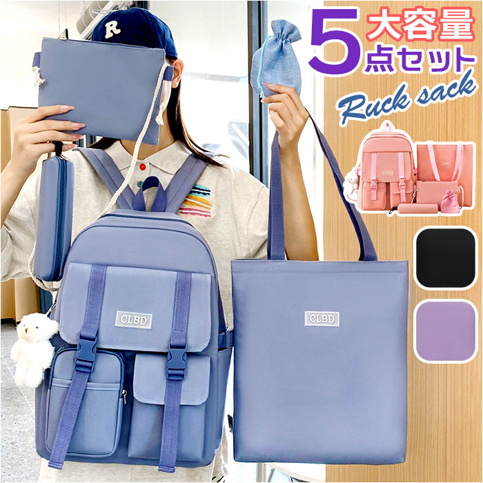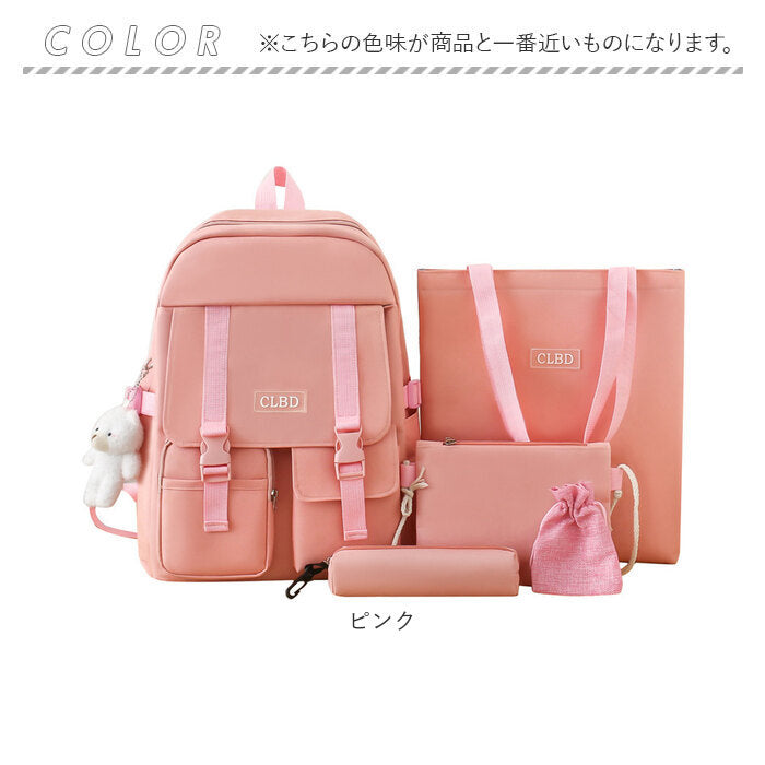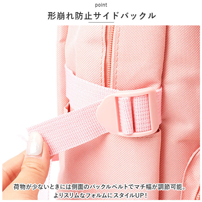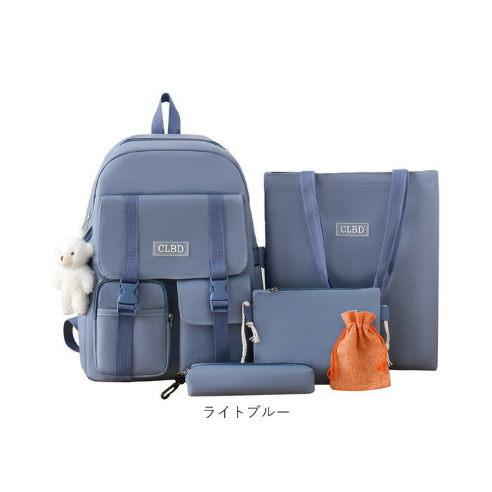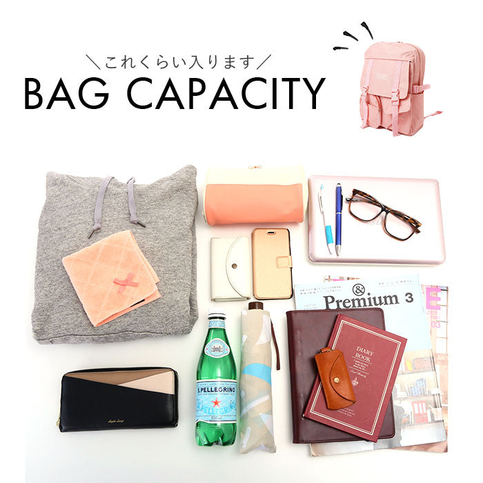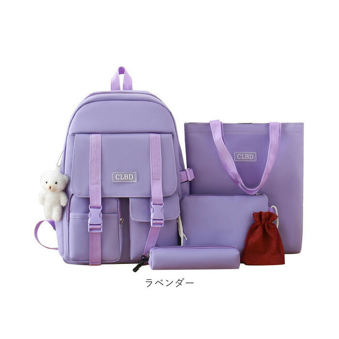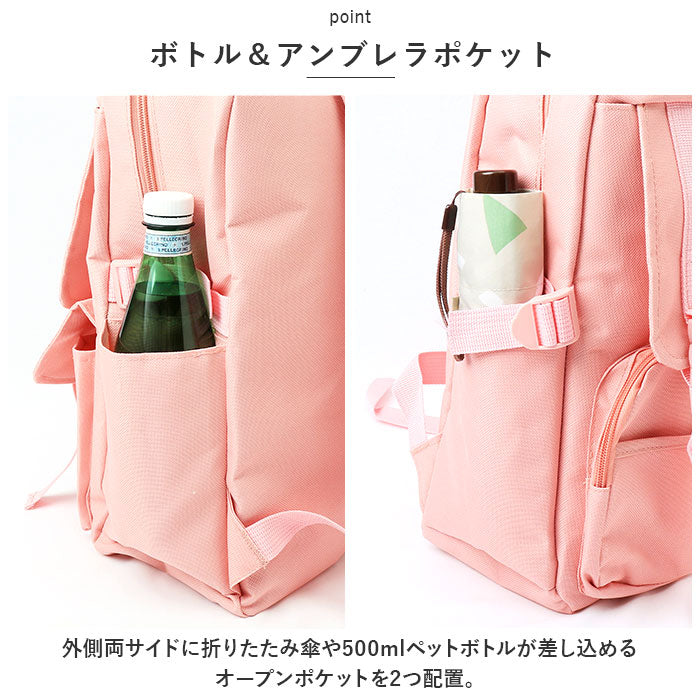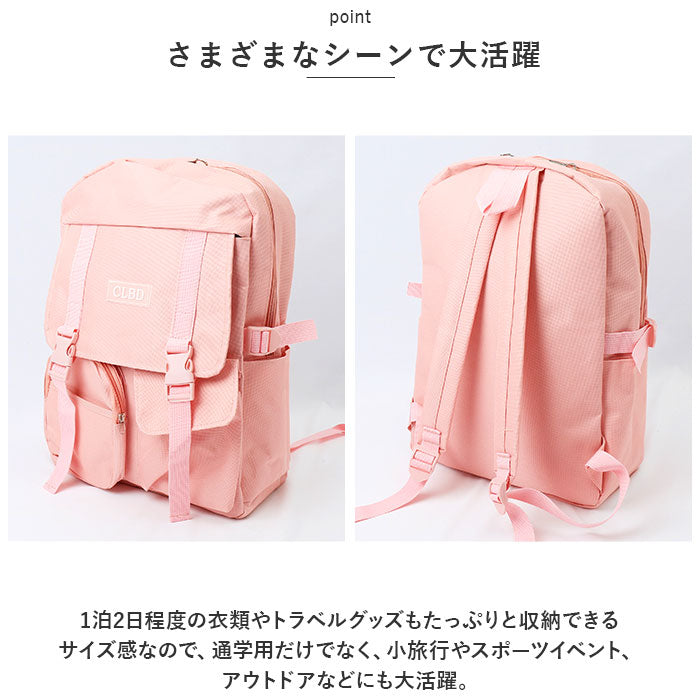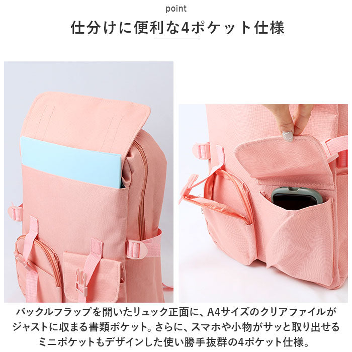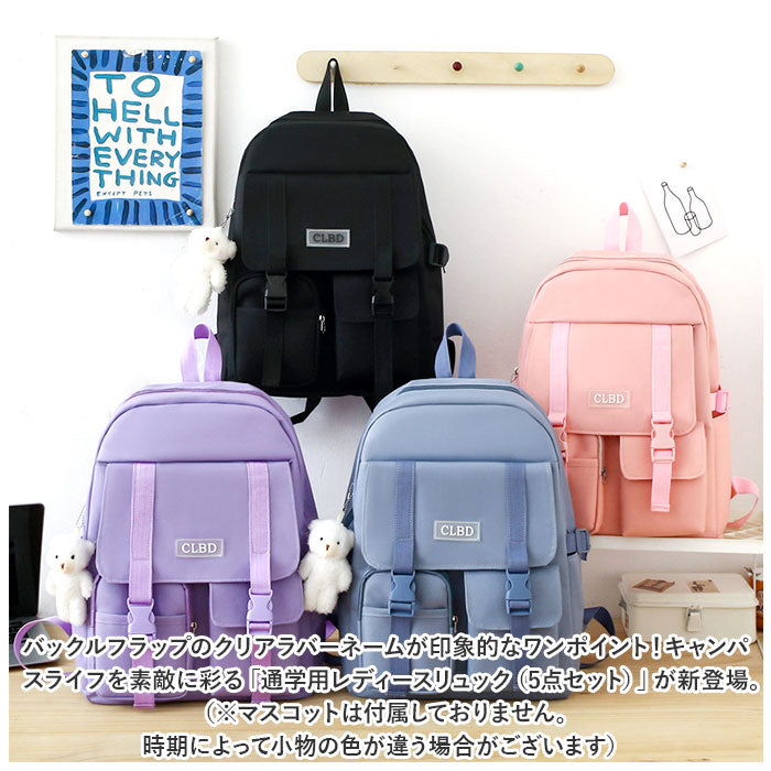 ・バックルフラップのクリアラバーネームが印象的なワンポイント!キャンパスライフを素敵に彩る「通学用レディースリュック(5点セット)」が新登場。