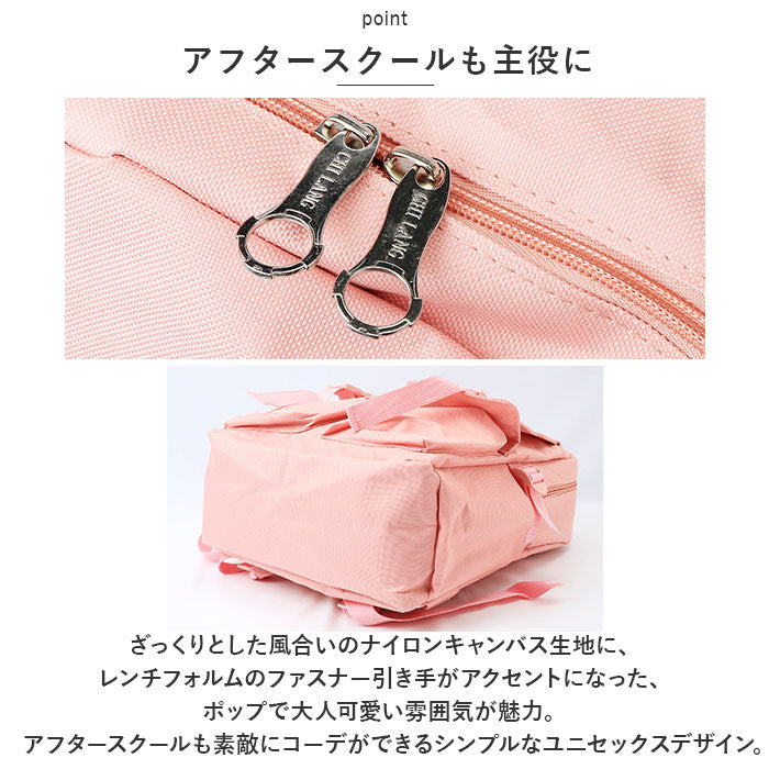 ※ざっくりとした風合いのナイロンキャンバス生地に、レンチフォルムのファスナー引き手がアクセントになった、ポップで大人可愛い雰囲気が魅力。アフタースクールも素敵にコーデができるシンプルなユニセックスデザイン。