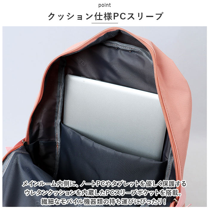 1泊2日程度の衣類やトラベルグッズもたっぷりと収納できるサイズ感なので、通学用だけでなく、小旅行やスポーツイベント、アウトドアなどにも大活躍。