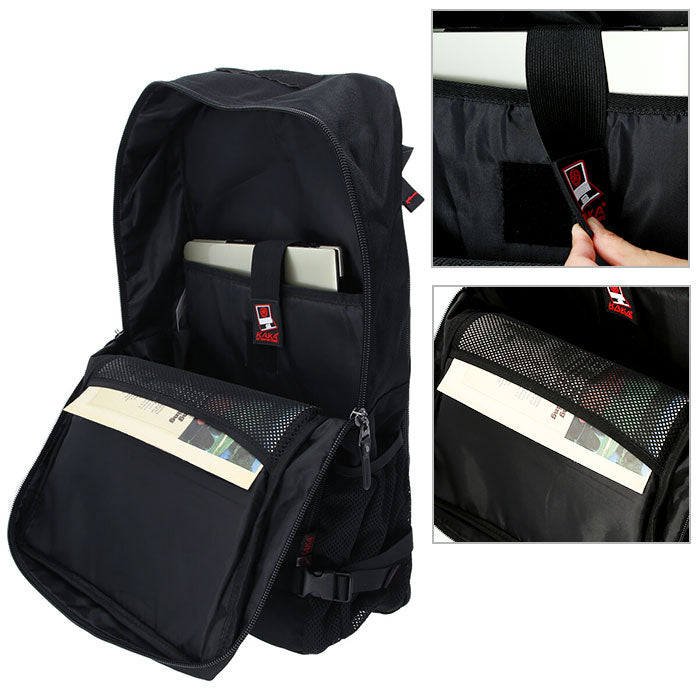 ・リュックの右サイドには、折りたたみ傘やペットボトルの収納に便利なメッシュポケット付き。