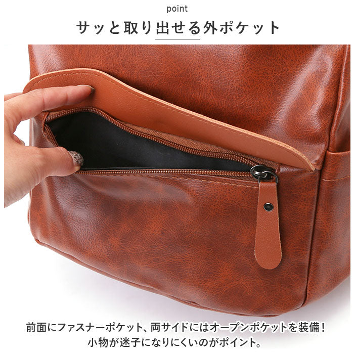 ・手触り滑らかなPUレザー素材を使用。落ち着きのある仕上がりで、どんなテイストのお洋服にもマッチ☆