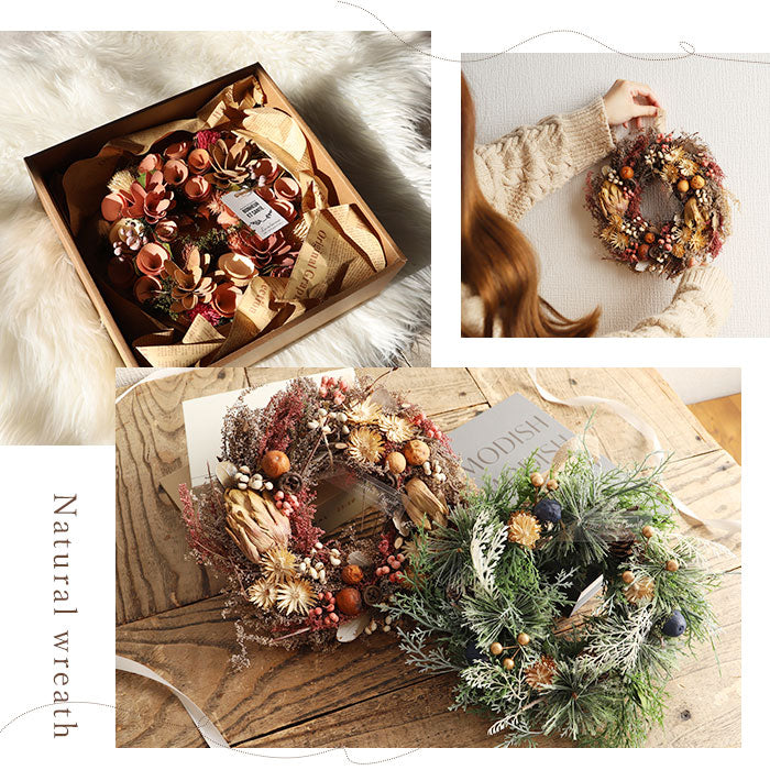 ・天然素材を使用♪優しい色味で仕上げた「ナチュラル リース Mサイズ」が登場!