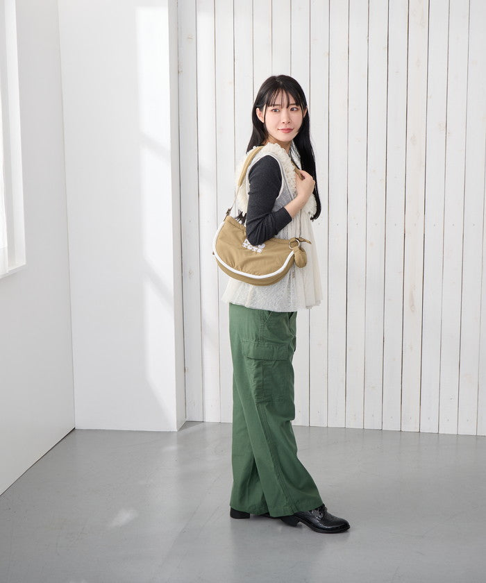 ・見た目はコンパクトでも、長財布、スマホ、ミニポーチなど、必要なアイテムはしっかり収納。週末のカフェ巡りや、ちょっとしたお出かけにぴったり。