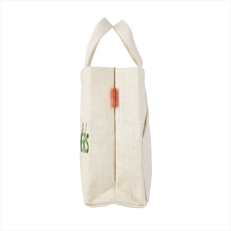 ・地球にやさしい素材として注目の「ジュート」を本体に使用しました。季節感を味わえて、見て、使って楽しい!裏面にラミネート加工を施すことで軽さと硬さを両立。何も入れていなくてもキチンと自立する形状です。