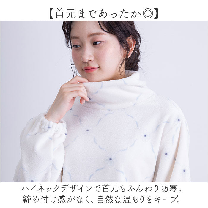 ・ハイネックデザインで首元もふんわり防寒。締め付け感がなく、自然な温もりをキープ。