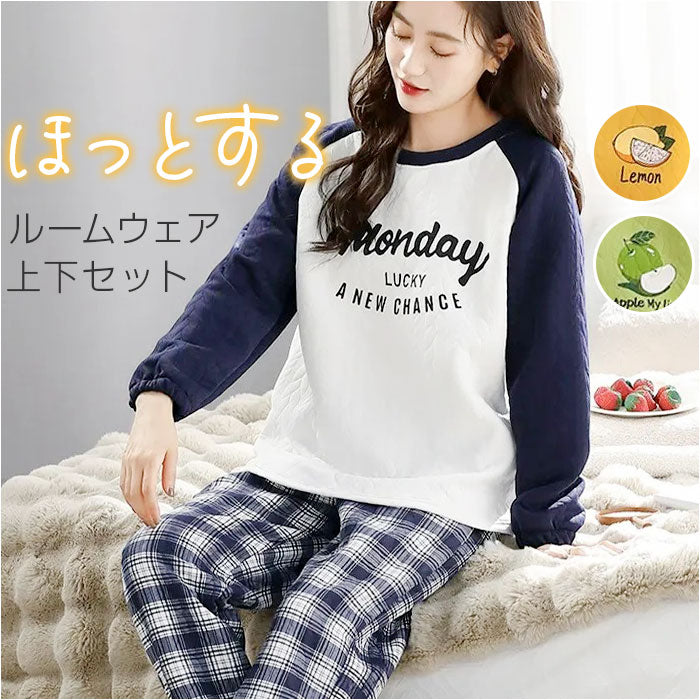 ルームウェア レディース 上下セット 通販 部屋着 パジャマ 長袖 長ズボン セットアップ 暖かい コットン ナイトウェア ロングパンツ 冬用 寝間着 寝巻き あったか 女性 ゆったり