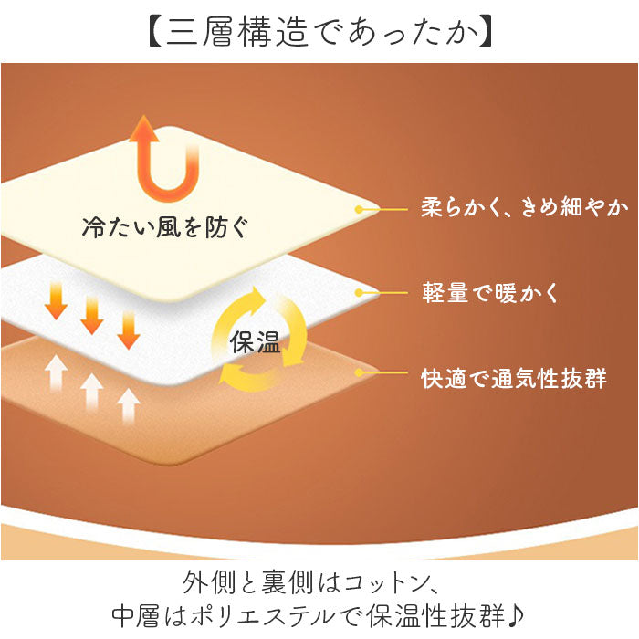・外側と裏側はコットン、中層はポリエステルで保温性抜群♪