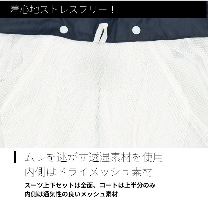 ・自転車通学や通勤に最適!雨や風を防ぎ、ムレにくい透湿素材を使用した理想のレインウェア。