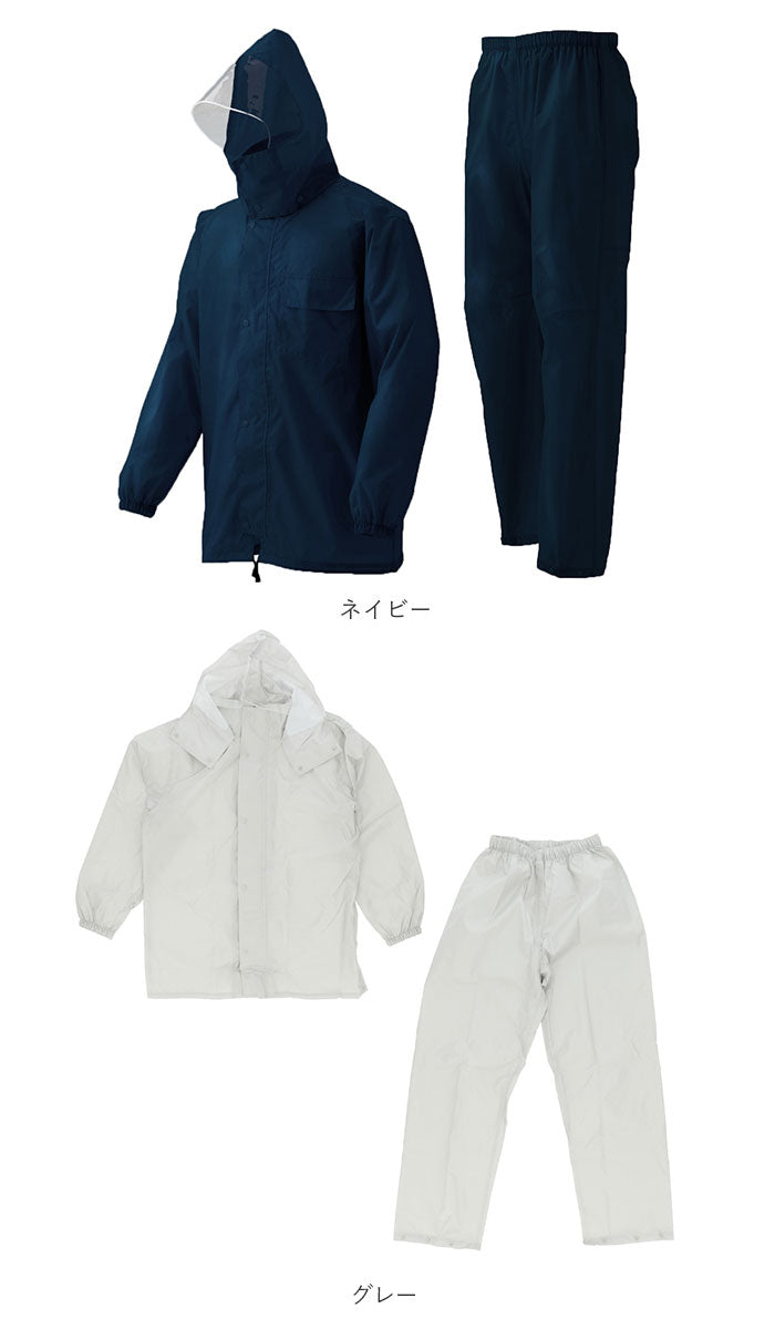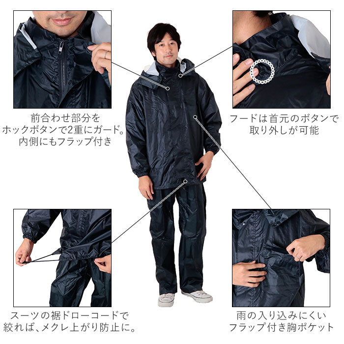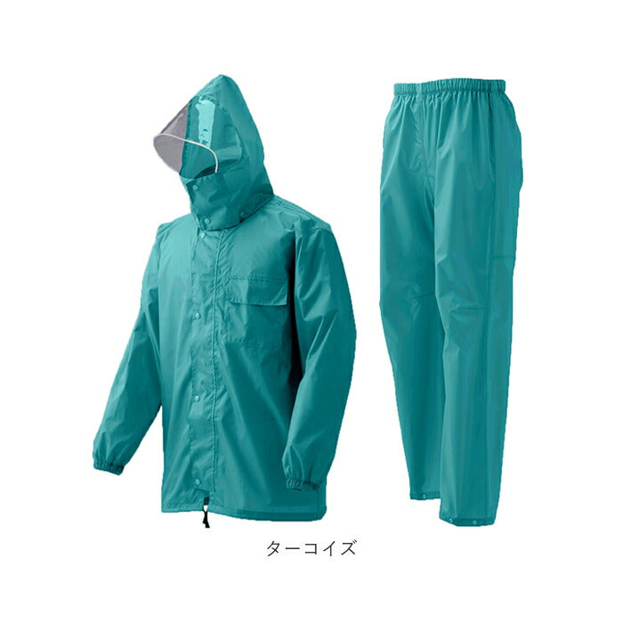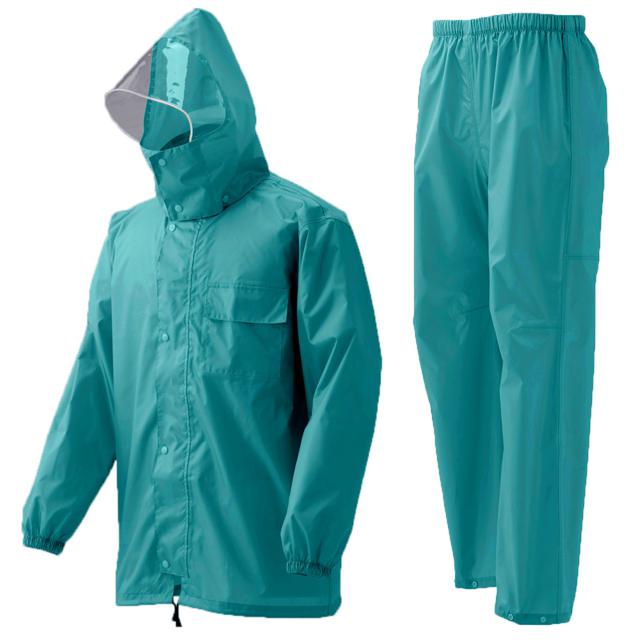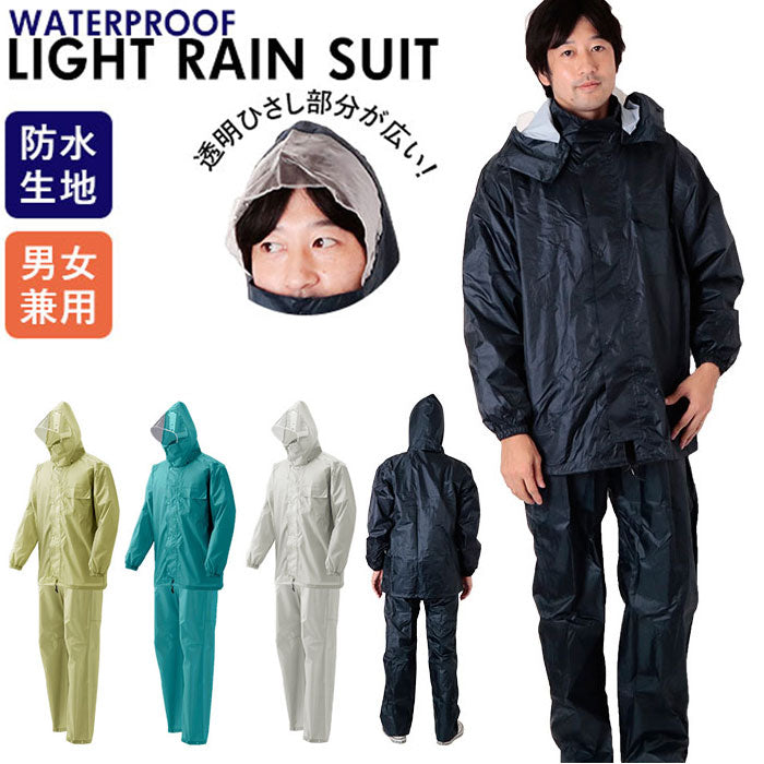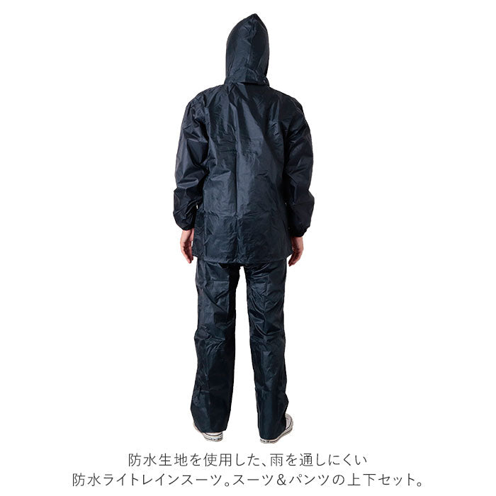 ・防水生地を使用した、雨を通しにくい防水ライトレインスーツ。スーツ&パンツの上下セット。