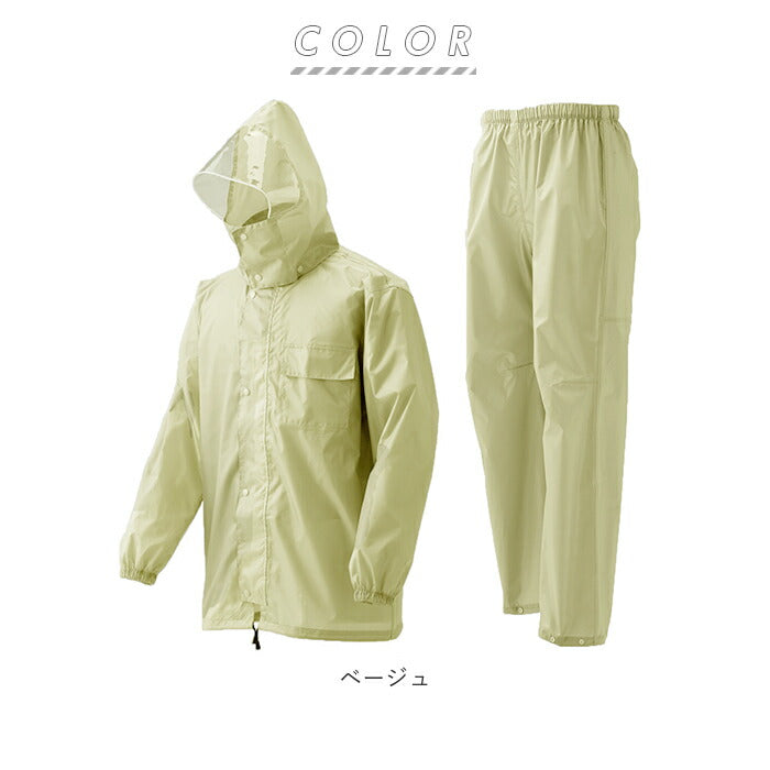 レインコート 上下 通販 自転車 防水 メンズ レディース レインスーツ 上下セット シンプル 無地 通勤 通学 軽量 軽い フード付き 取り外し可 透明ツバ クリア フード取り外し 透明ひさし 男女兼用 はっ水 撥水 折り畳み コンパクト 収納袋付き 防水ライトレインスーツ