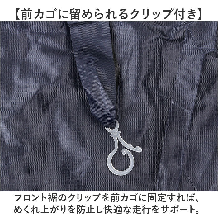 ・フロント裾のクリップを前カゴに固定すれば、めくれ上がりを防止し快適な走行をサポート。