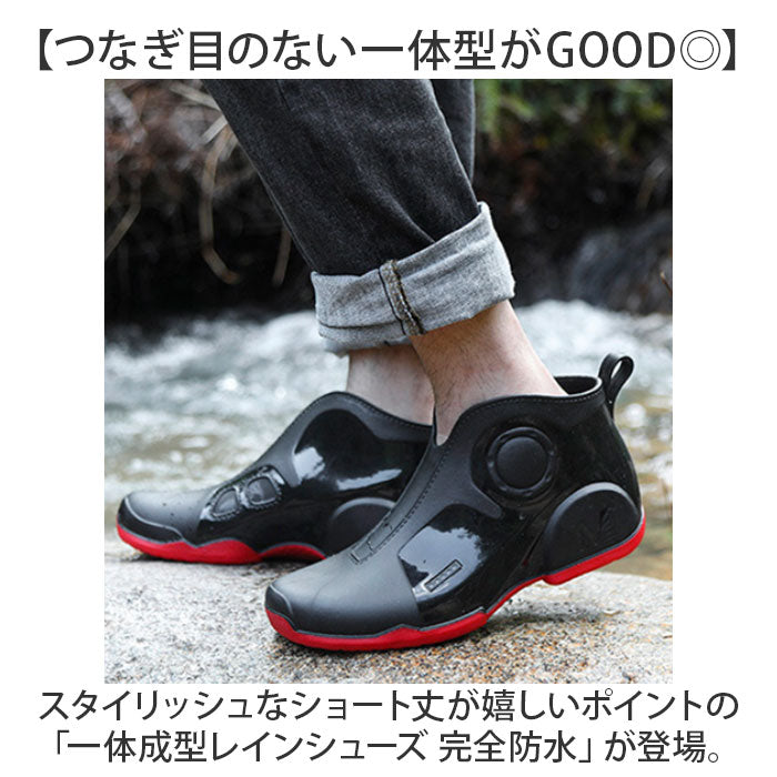 ・スタイリッシュなショート丈が嬉しいポイントの「一体成型レインシューズ 完全防水」が登場。