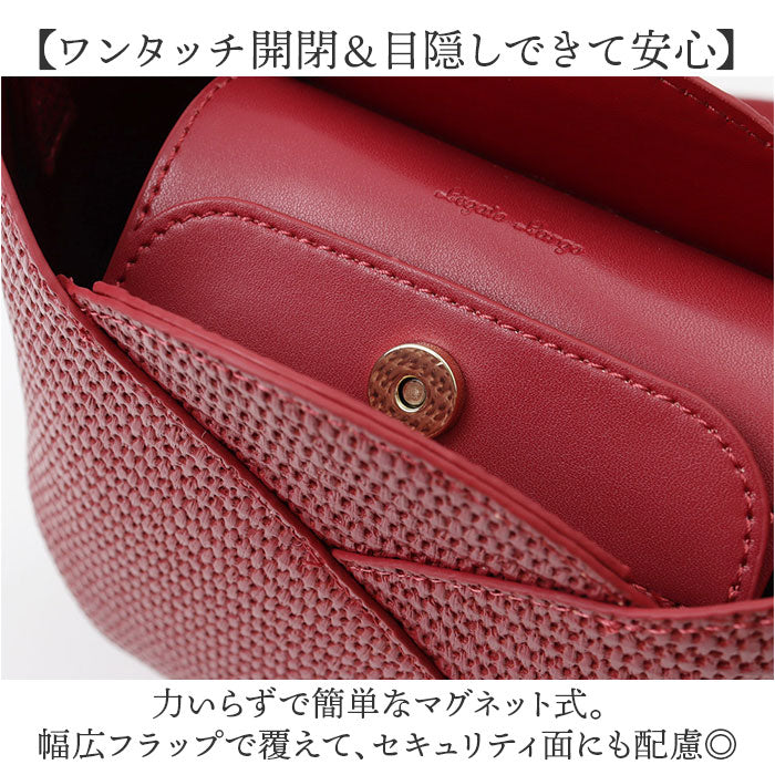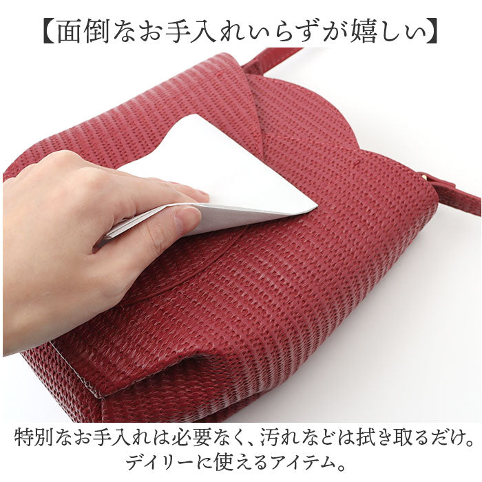 ・柔らかな合皮素材で、カゴのような風合いを表現。爽やかな雰囲気で春気分が高まる♪