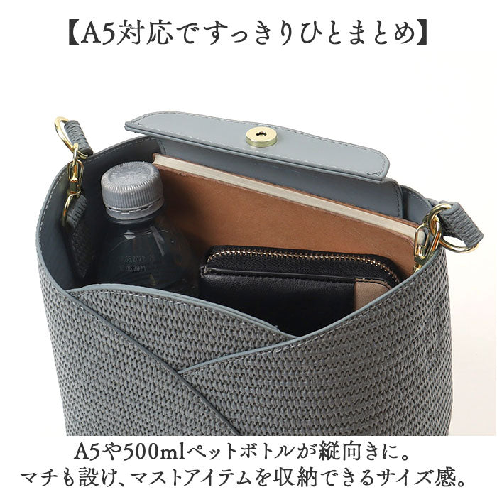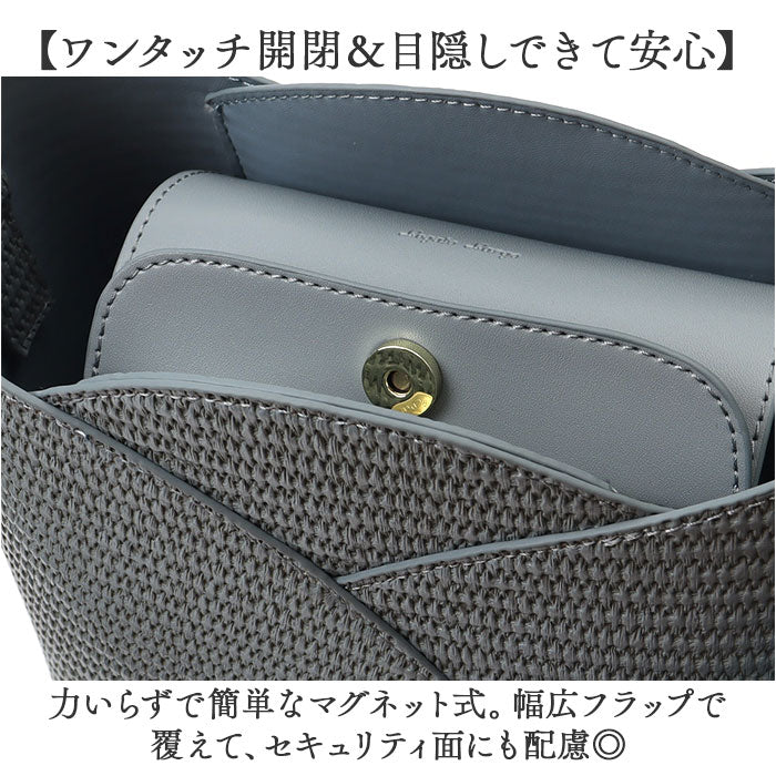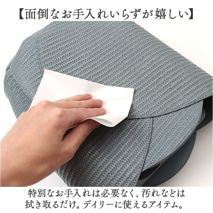 ・柔らかな合皮素材で、カゴのような風合いを表現。爽やかな雰囲気で春気分が高まる♪
