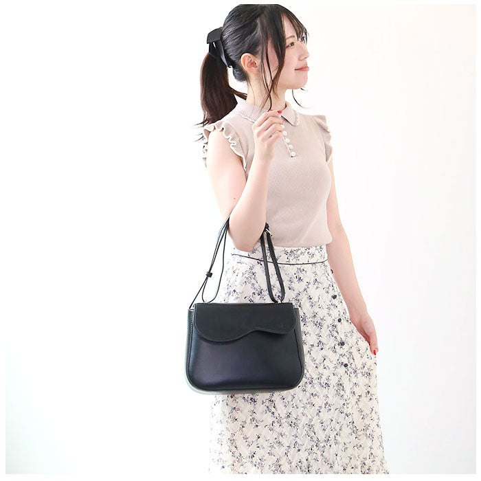 ・ウェーブ型のフラップデザインがポイント♪思わずとろけそうな大人可愛い仕上がりで、型押しのブランドロゴをプラス。