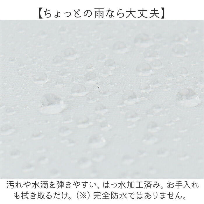 ・汚れや水滴を弾きやすい、はっ水加工済み。お手入れも拭き取るだけ。