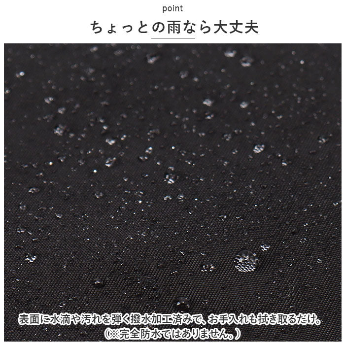 ・表面に水滴や汚れを弾く撥水加工済みで、お手入れも拭き取るだけ。(※完全防水ではありません。)
