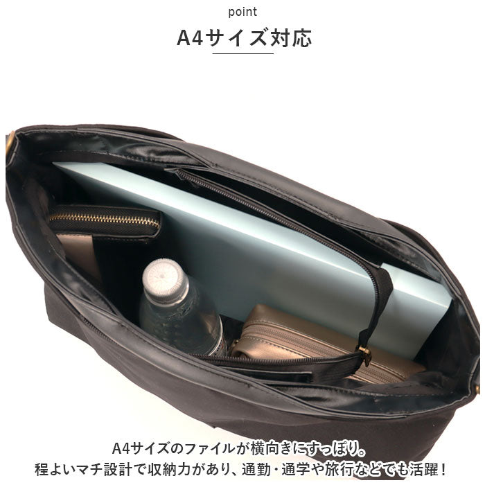 ・A4サイズのファイルが横向きにすっぽり。程よいマチ設計で収納力があり、通勤・通学や旅行などでも活躍!