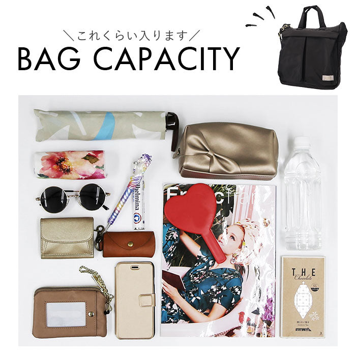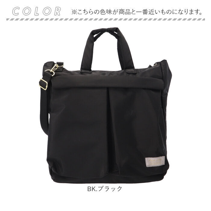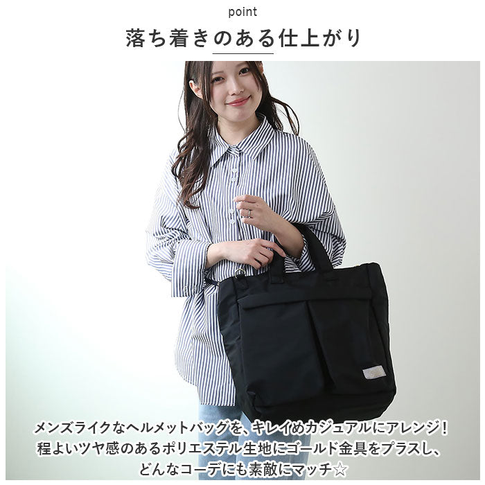 ・メンズライクなヘルメットバッグを、キレイめカジュアルにアレンジ!程よいツヤ感のあるポリエステル生地にゴールド金具をプラスし、どんなコーデにも素敵にマッチ☆