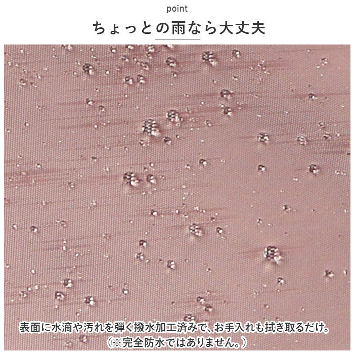 ・表面に水滴や汚れを弾く撥水加工済みで、お手入れも拭き取るだけ。(※完全防水ではありません。)