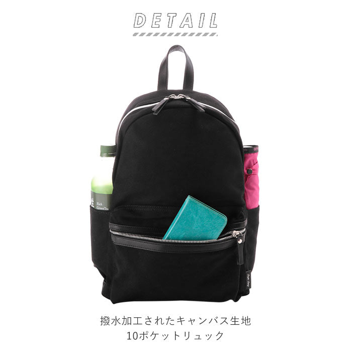 レガートラルゴ リュック 撥水 通販 ブランド おしゃれ 大容量 通勤 撥水加工 はっ水 無地 シンプル 10ポケット 通学 中学生 高校生 学生 大学生 メンズ ユニセックス 黒 グレー マザーズリュック ママリュック 大人 かわいい キャンバス 布 10ポケ デイパック
