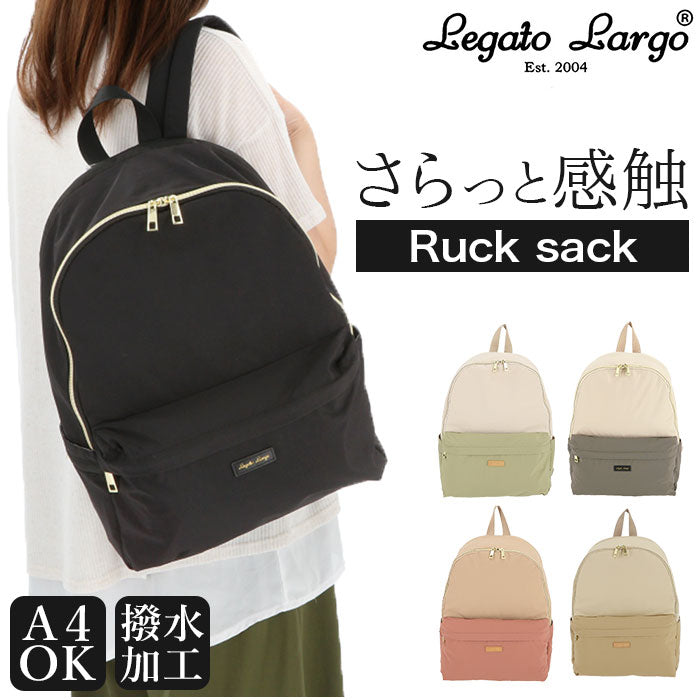 レガートラルゴ リュック 通販 レディース おしゃれ 大人 かわいい 通勤 通学 黒 軽量 大容量 撥水 はっ水 背面ポケット リュックサック シンプル カジュアル legato largo LT-D1063 サラットポリエステル さらっとポリエステル