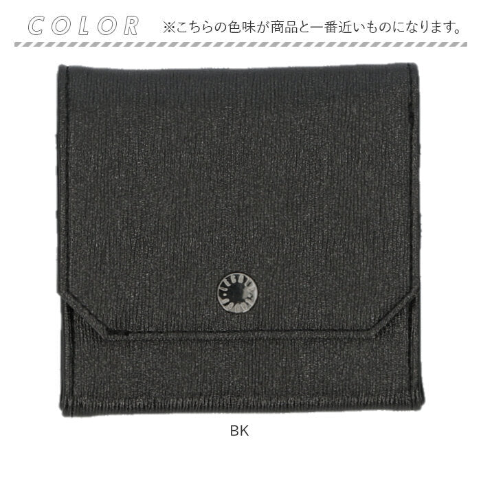 ・スナップボタン式&ボックス型小銭入れ。お札もカードも入るポケット付きで、程よい収納力。