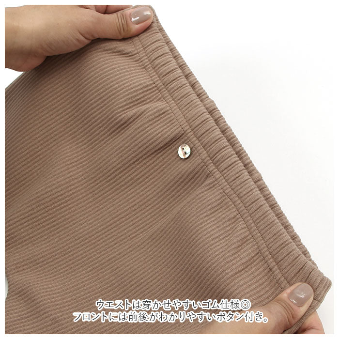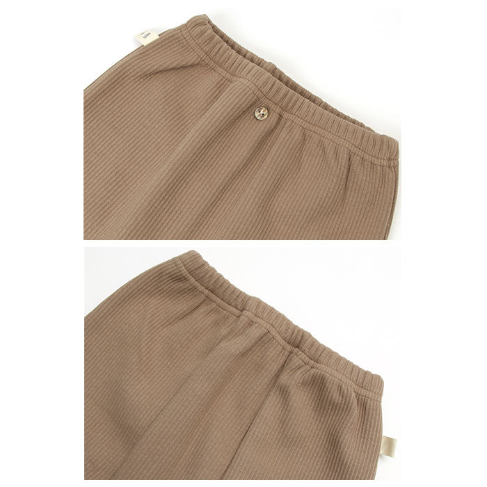 ・ウエストは穿かせやすいゴム仕様◎フロントには前後がわかりやすいボタン付き。