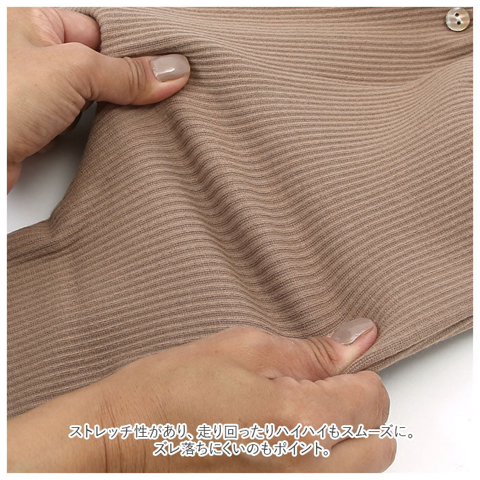 ・ストレッチ性があり、走り回ったりハイハイもスムーズに。ズレ落ちにくいのもポイント。