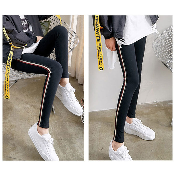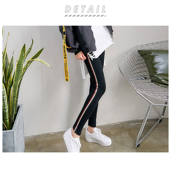 ・キラキララメのサイドラインがポイント!足のラインに程よくフィットする、レギンスパンツ。