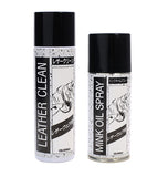オイル仕上げのレザーウェア用保革スプレーです。皮革に新しいミンクオイルを加え、柔らかさと滑らかさを保ちます。動物性ミンクオイルが皮革によく馴染みます。
