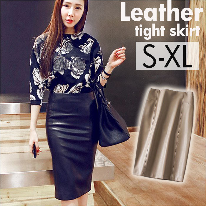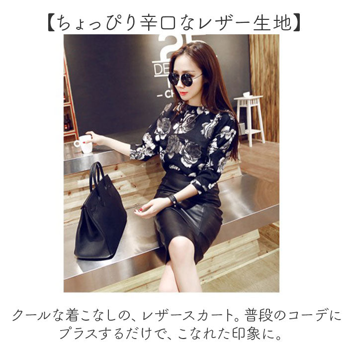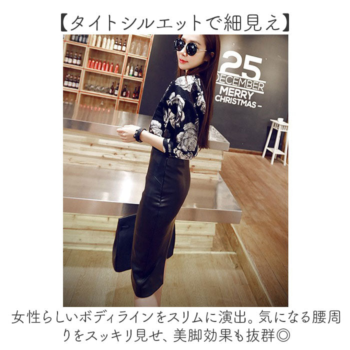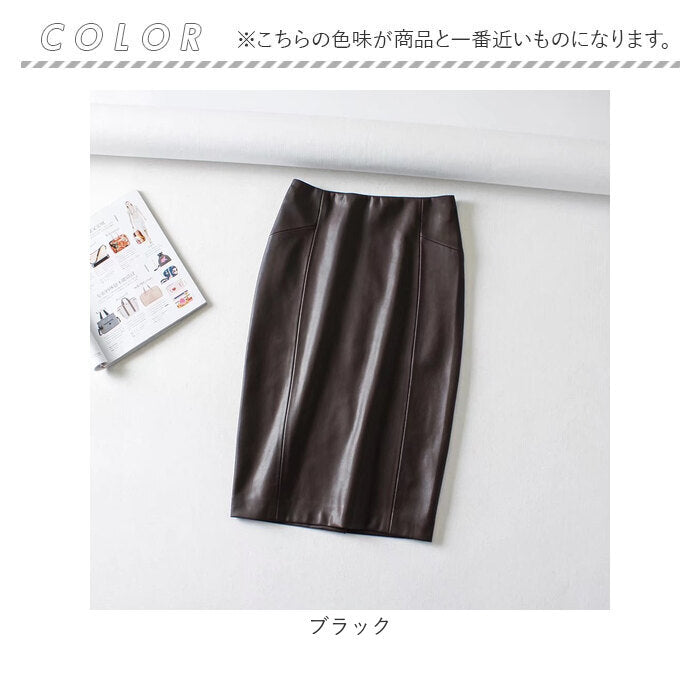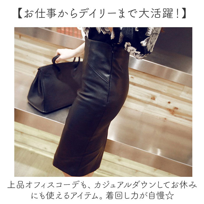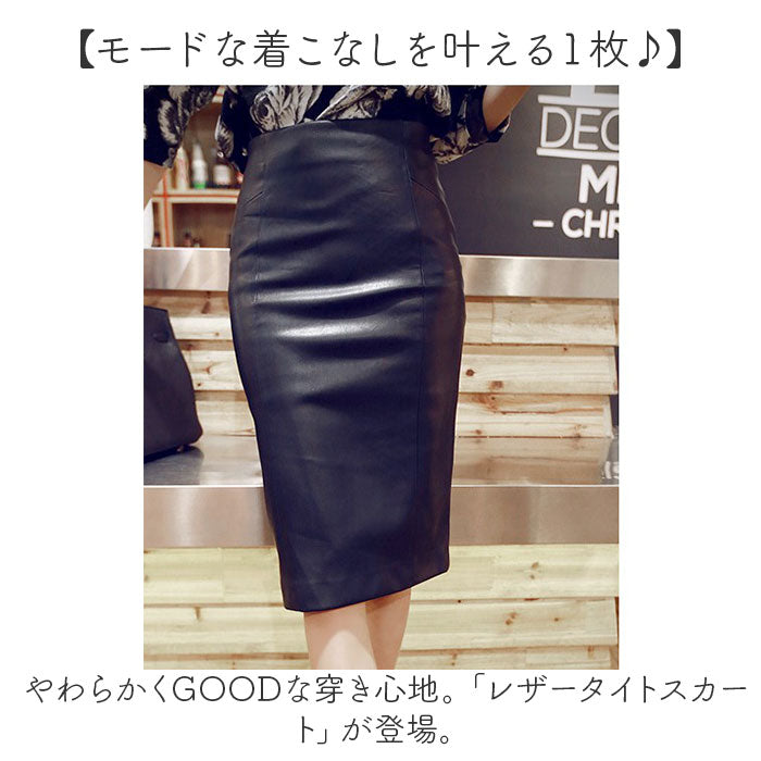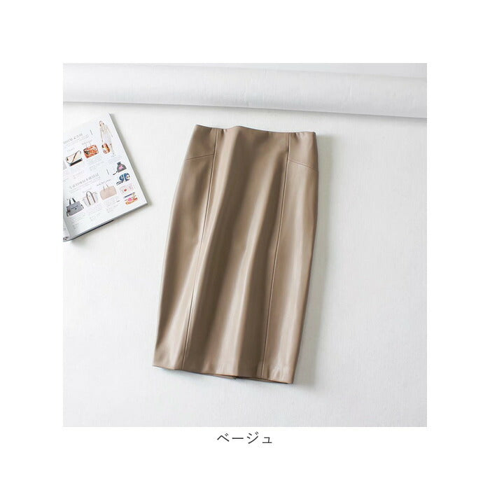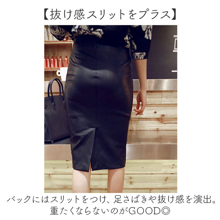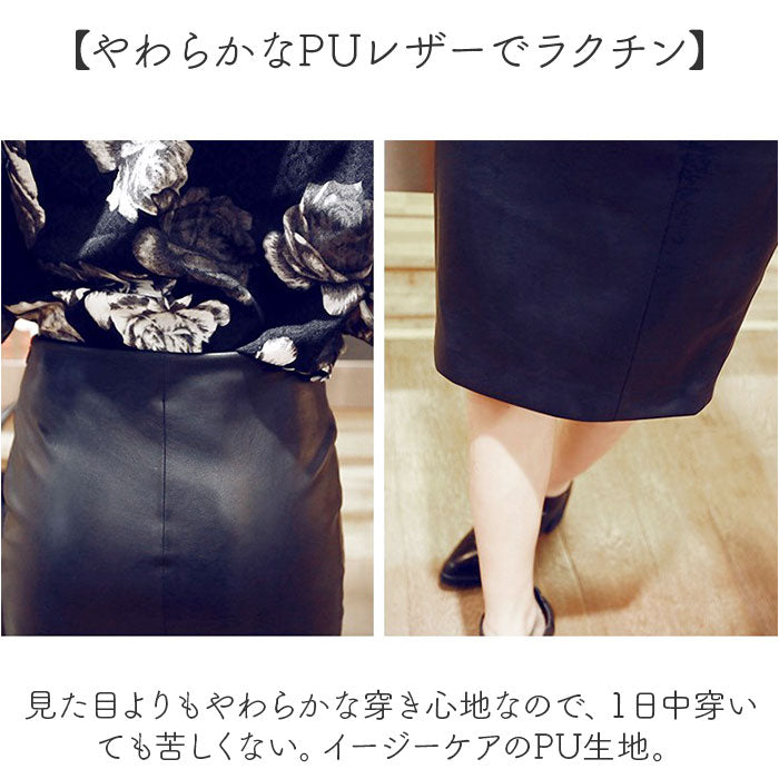 レザー タイトスカート ひざ丈 通販 レザースカート 膝丈 タイト スカート ミニ ボトムス スリット Iライン スリム PUレザー 柔らかい シンプル 無地 上品 きれいめ フォーマル 通勤 通学