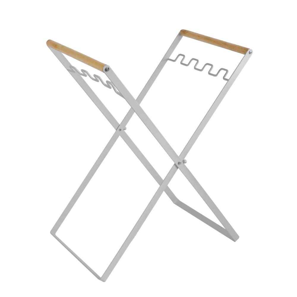 ・波状の凹凸が印象的なワイヤーフック部分に、コンビニのレジ袋や取っ手付きゴミ袋を掛けるだけの簡単構造で、使い勝手も抜群。