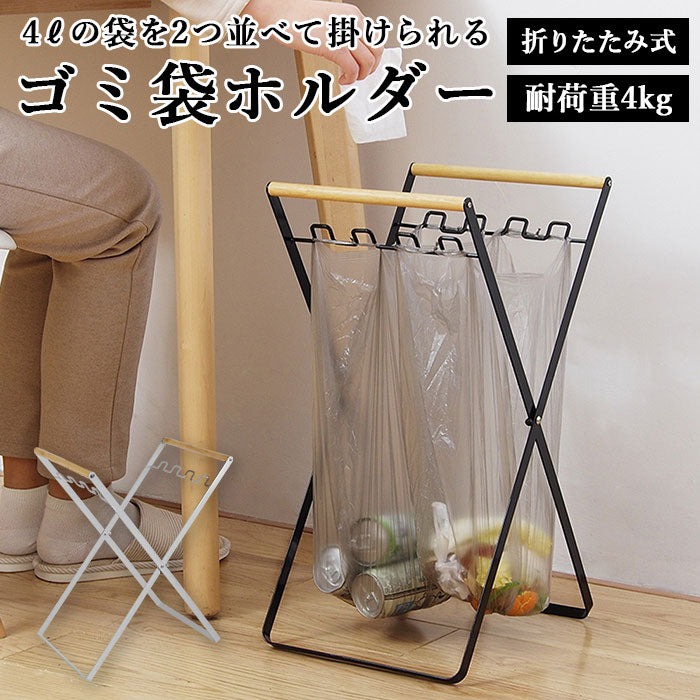 ・容量4リットルのレジ袋を二つ並べて掛けられるコンパクトなサイズ感。おひとり暮らしのお部屋や、子ども部屋用のゴミ入れに最適。(※耐荷重は4kgまでとなります。過度に重いものを掛けてのご使用お避けください。)