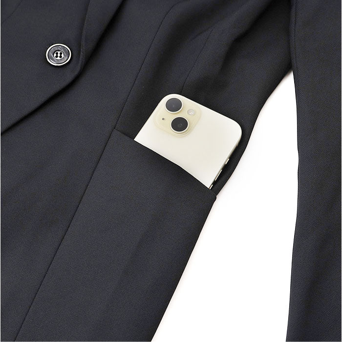 ・フロントボタンを1つ配置し、スマートな印象を演出。左右にポケット付き。