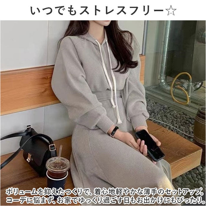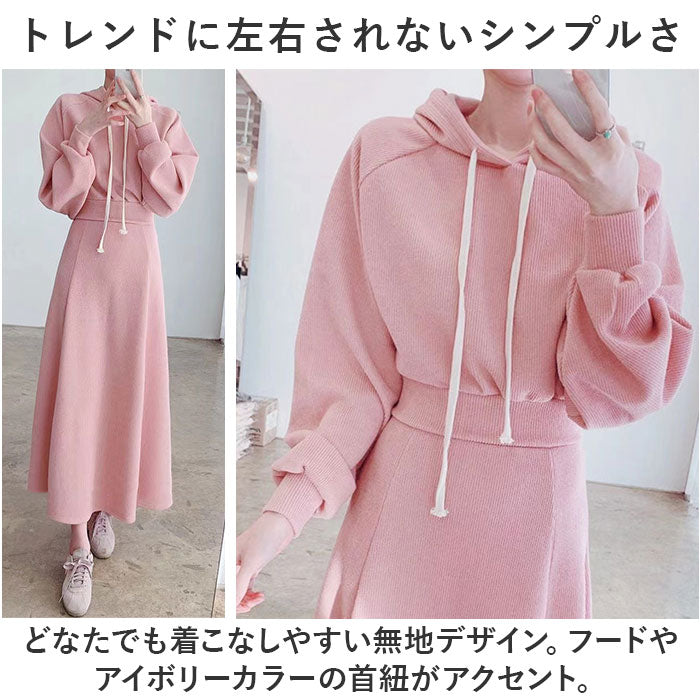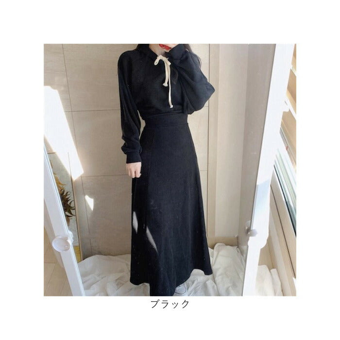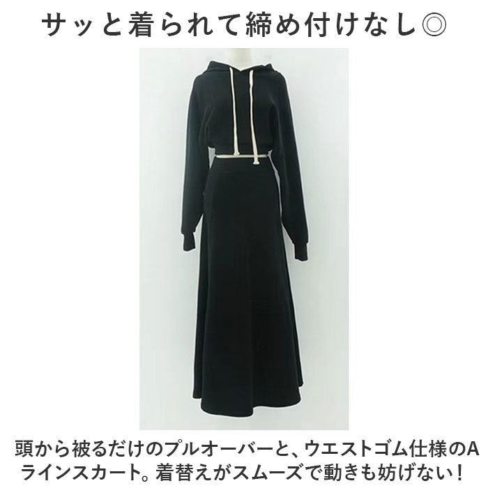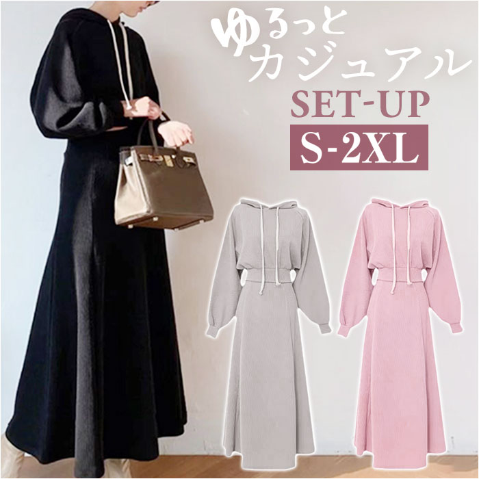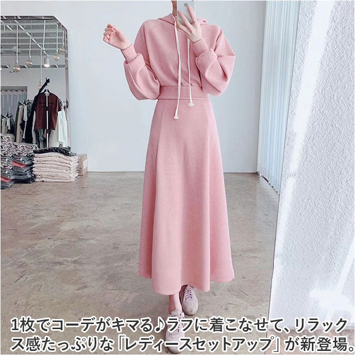 レディースセットアップ 冬 ルームウェア 通販 セットアップ プルオーバー パーカー トレーナー 部屋着 Aラインスカート Aライン ロング丈 ロング ゆったり 体型カバー きれいめ 長袖